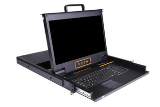 Выдвижная LCD KVM консоль с монитором Kinan 17", PS/2+USB, Клавиатура Ultra-Slim, Тачпад, TFT-дисплей, 8 портов VGA, каскад до 256 устройств, разрешение WideScreen FullHD 16:9 до 1920x1080 60Hz,локальная (без доступа через интернет) (XW1708)