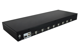 - 8 портовый переключатель KVM с HDMI интерфесами, подключается к серверу KVM кабелем максимальной длиной до 10 метров